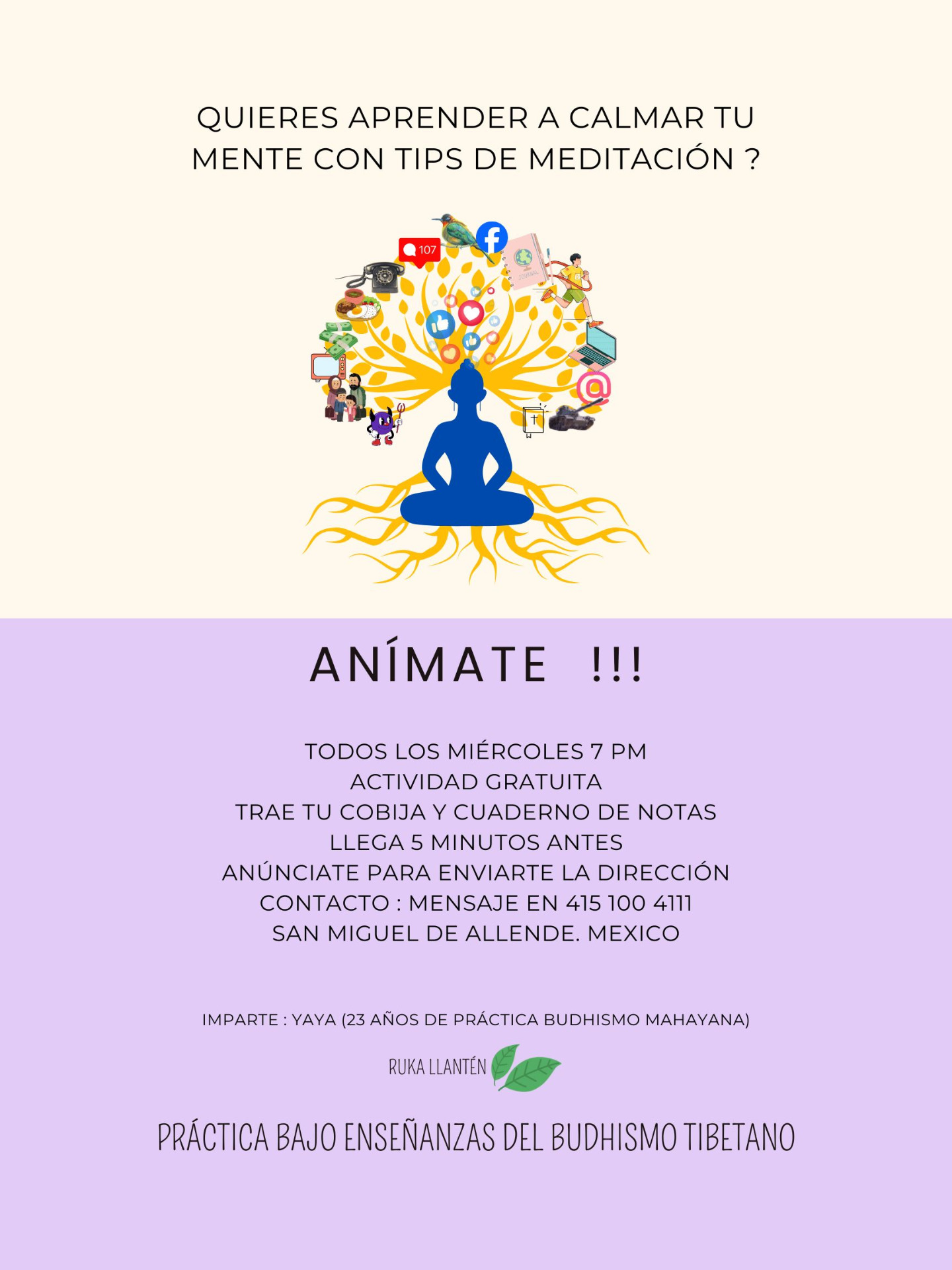 My precious and honored path in Tibetan Buddhism for more than 20 years has given me the magnificent opportunity to share with such elevated and charismatic beings as our beloved guide, Lama Aria Drolma (bottom center of the image) and learn from her sensitive and close practice of SAMATHA MEDITATION. On the path of learning, my base teachers Lama Gendun Yerpal and Kenpho Lama Pema Wangdhak have inspired me to support this spiritual path to share it and to attest to its fascinating sense of transcendental change. It is beautiful to have the conviction and desire to share. Format of operation: TALKS AND CONCERTS OF SACRED SONGS.